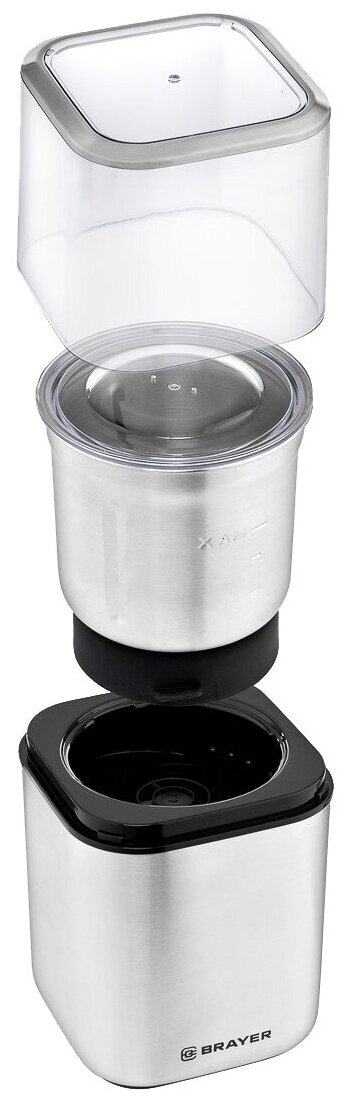 Кофемолка электрическая BRAYER BR1180, емкость 70 гр, серебристый