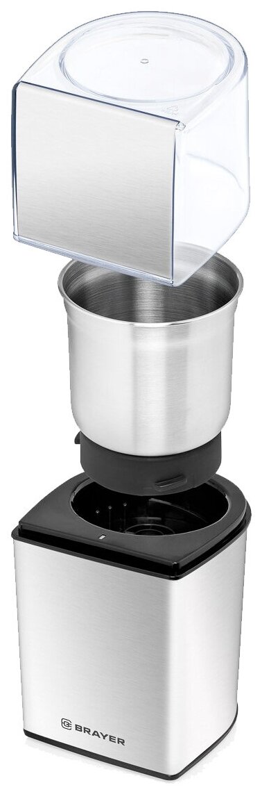 Кофемолка BRAYER 1181BR /200 Вт, нерж. корп, 2 ножа для мяг. и твер., 70 г.