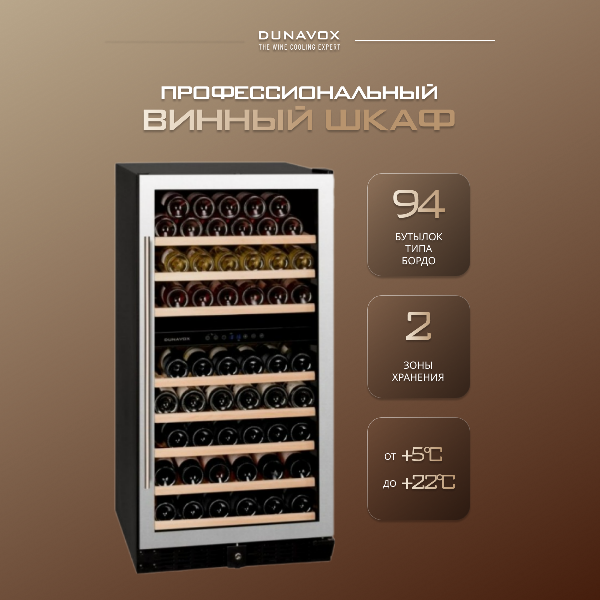 Винный холодильный шкаф Dunavox DX-94.270SDSK компрессорный (встраиваемый / отдельностоящий холодильник для вина на 94 бутылки) информация:
