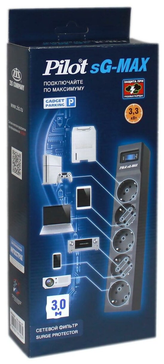 Отзывы на Сетевой фильтр ZIS Pilot Pilot sG-max 3 m, 5 р, 3 м, 16 А, 150 Дж, графит