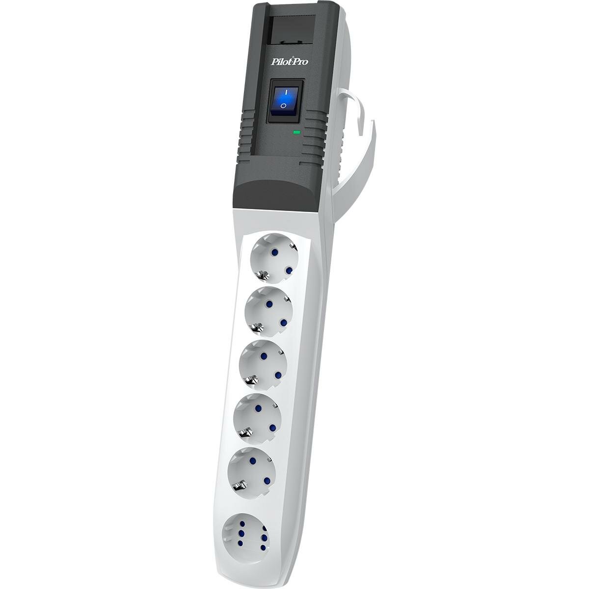 Сетевой фильтр PILOT "S", 5 компьютерных розеток + 1 бытовая розетка, 1,8 м, белый