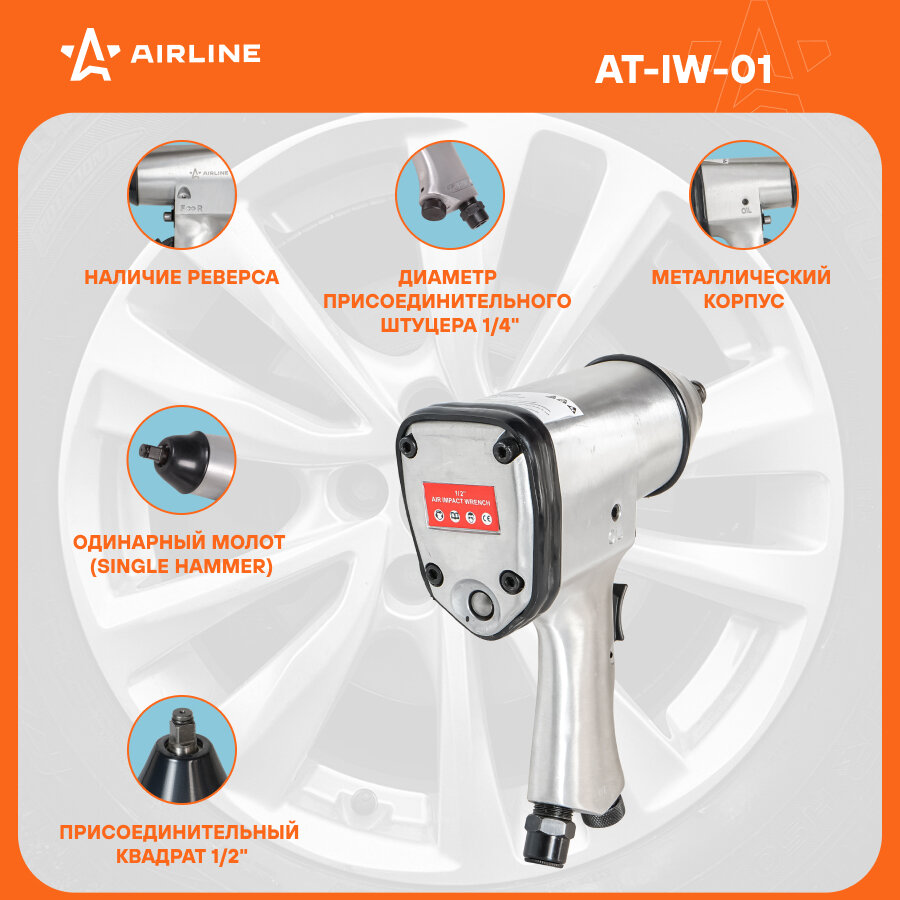 AIRLINE / atiw01 / Гайковёрт пневматический ударный 1/2DR 330Нм" 2 737 ₽