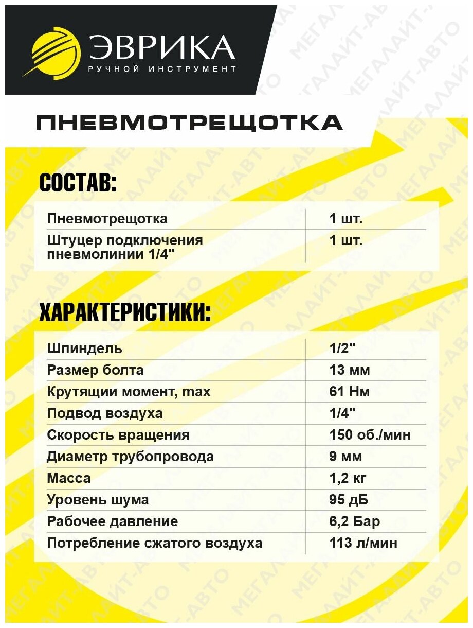 10 цен на Эврика Пневмотрещотка 1/2, 68Нм, 160 об./мин ER-85220