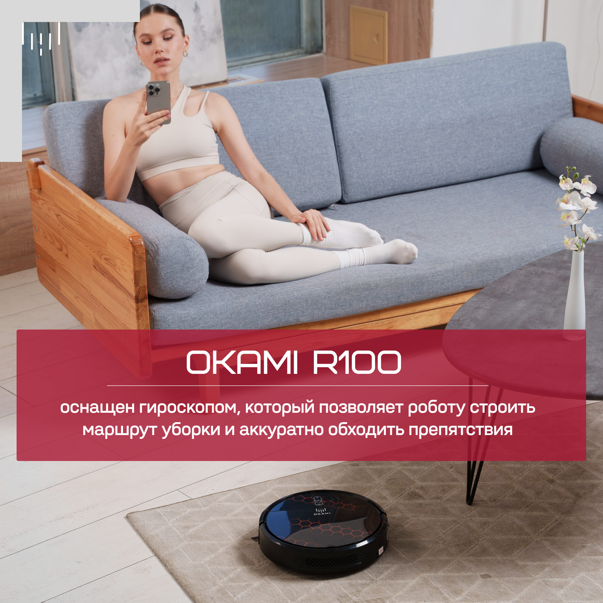 OKAMI Робот-пылесос R100: 78 мм высоты, 2600 Па Оками, идеален для сбора шерсти и влажной уборки без турбощетки информация: