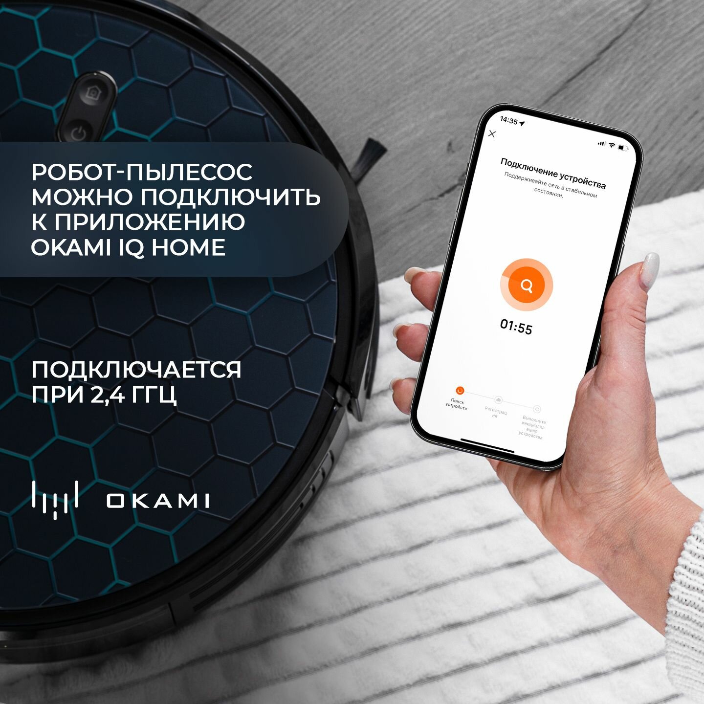 OKAMI Робот-пылесос R117: Оками 6500 Па, подвижная турбощетка, автоматическая уборка с влажной протиркой и увеличение мощности на коврах 42 600 ₽