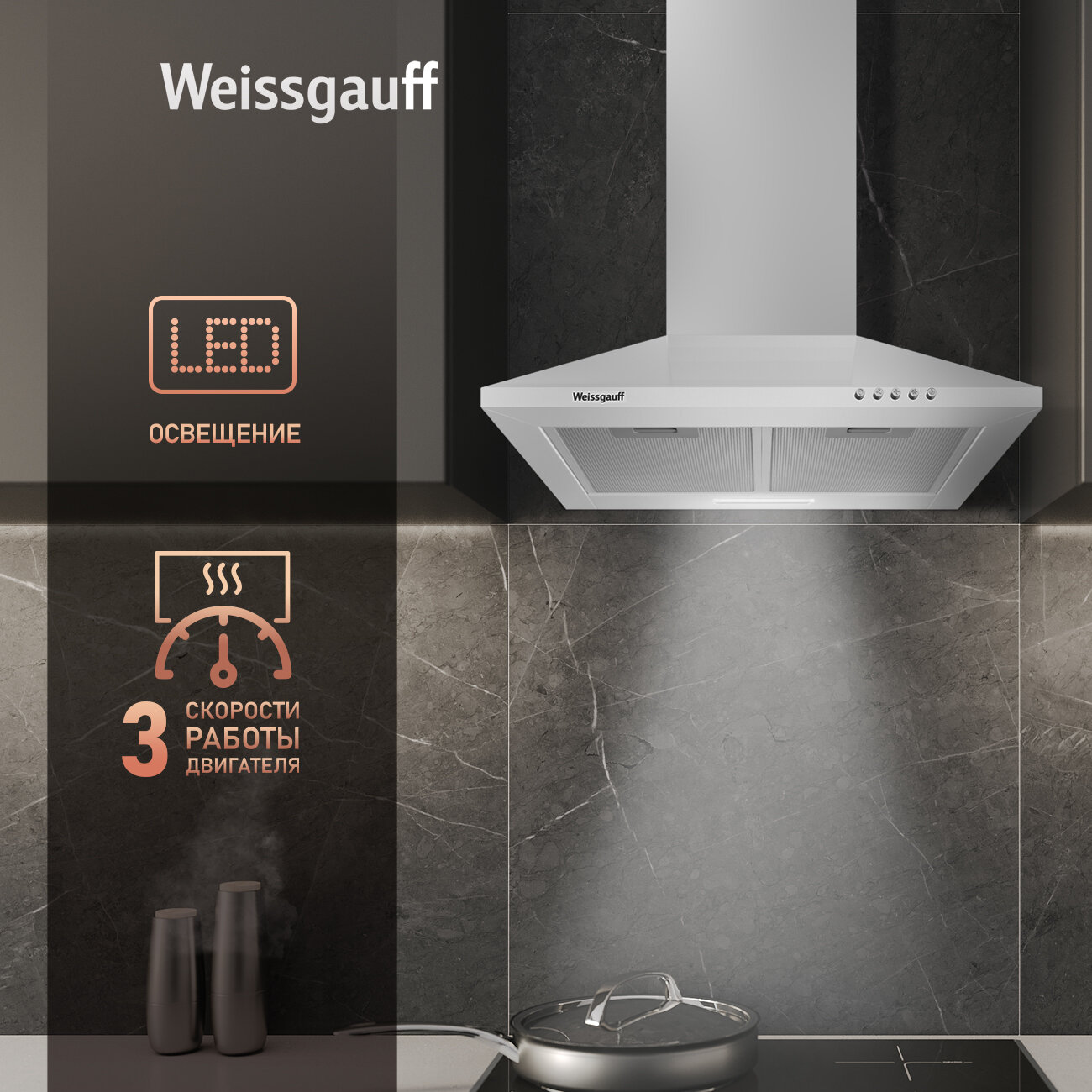 10 цен на Купольная вытяжка Weissgauff Zosma 50 PB WH, Алюминиевый жировой фильтр особой трёхслойной конструкции