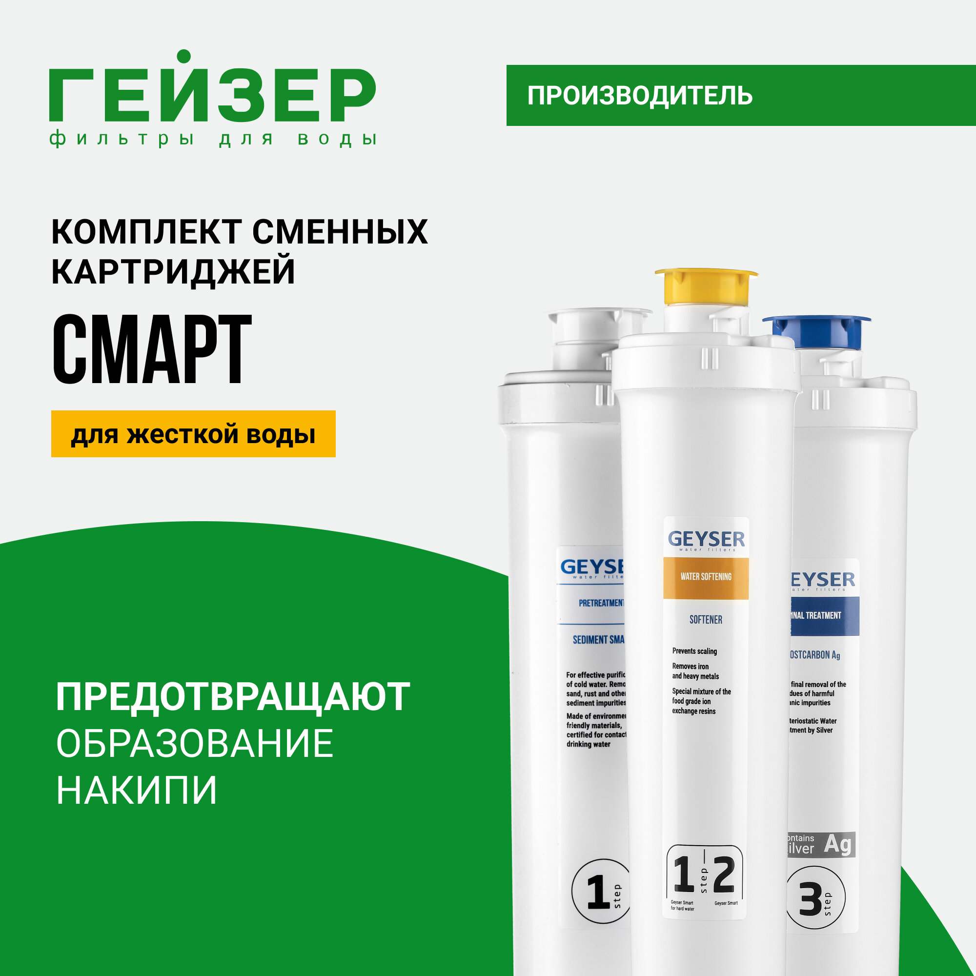 Комплект сменных картриджей для фильтра "Смарт" умягчение "ГЕЙЗЕР",50105