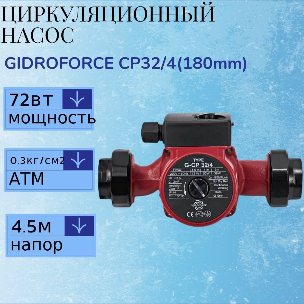 Циркуляционный Насос GIDROFORCE CP32/4(180mm) трехскоростной с гайками для отопления / для дачи информация: