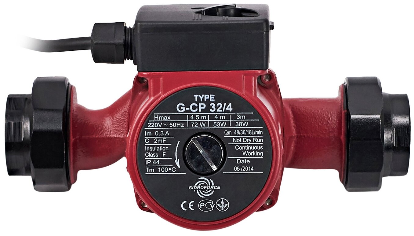 Отзывы на Циркуляционный Насос GIDROFORCE CP32/4(180mm) трехскоростной с гайками для отопления / для дачи