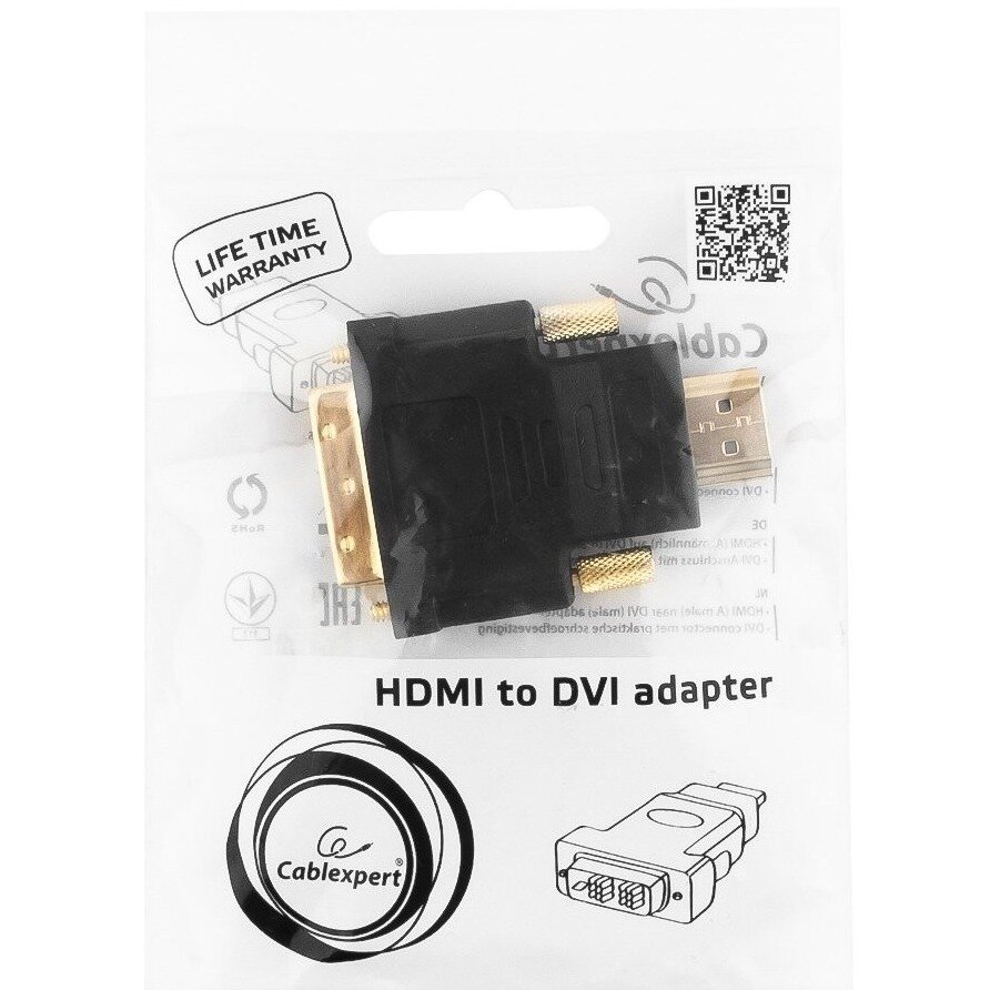 Переходник HDMI-DVI Cablexpert, 19M/19M, золотые разъемы (A-HDMI-DVI-1)