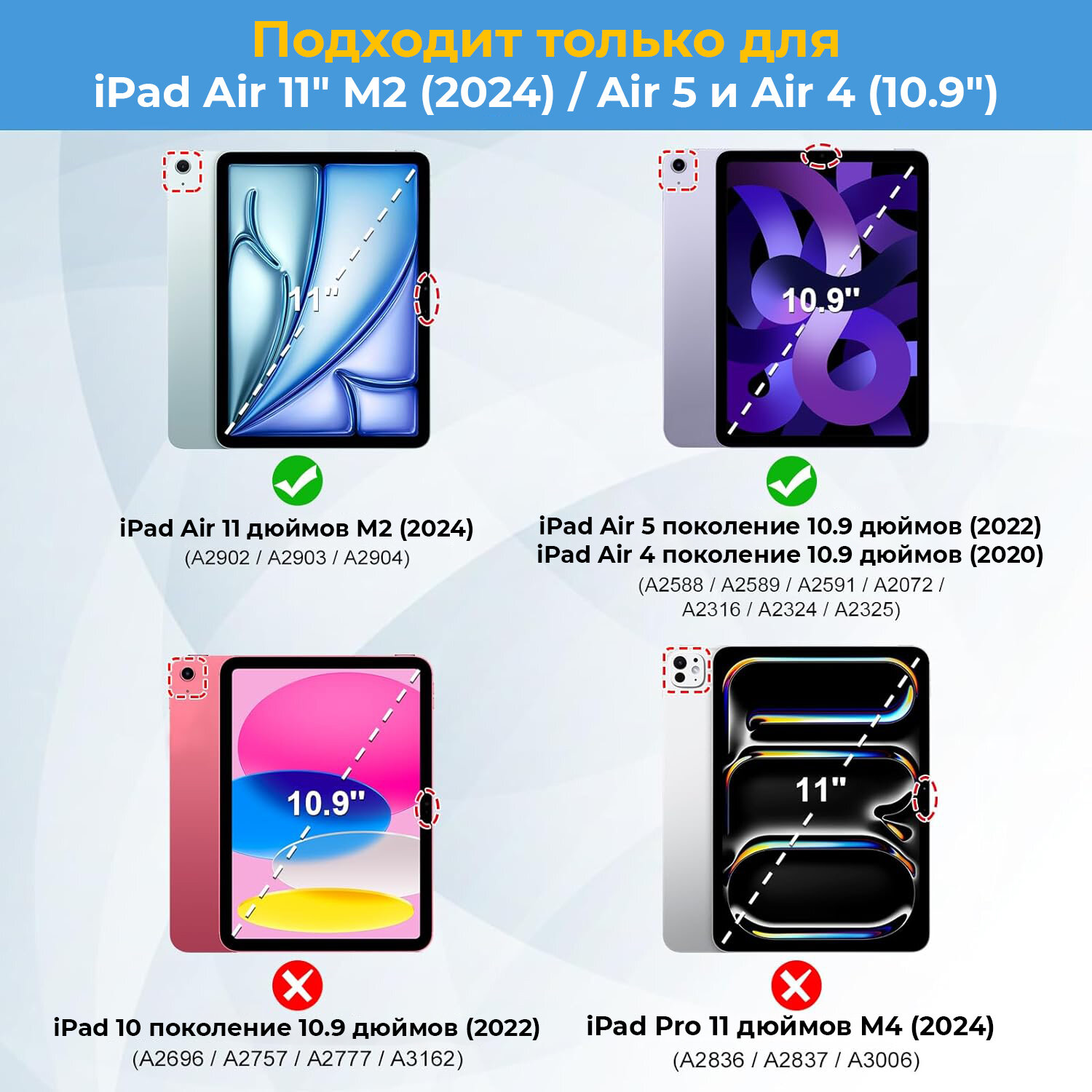 | Название модели | Apple iPad Air 4 10.9" (2020) и Apple iPad Air 5 10.9 (2022) |