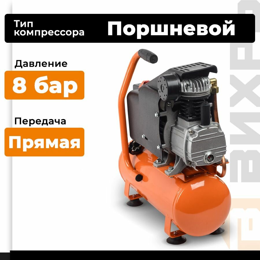 Отзывы на Компрессор КМП-210/10 Вихрь (Бак 10л, 1600Вт, 210 л/мин, 8бар, быстросъем.соед+кран)