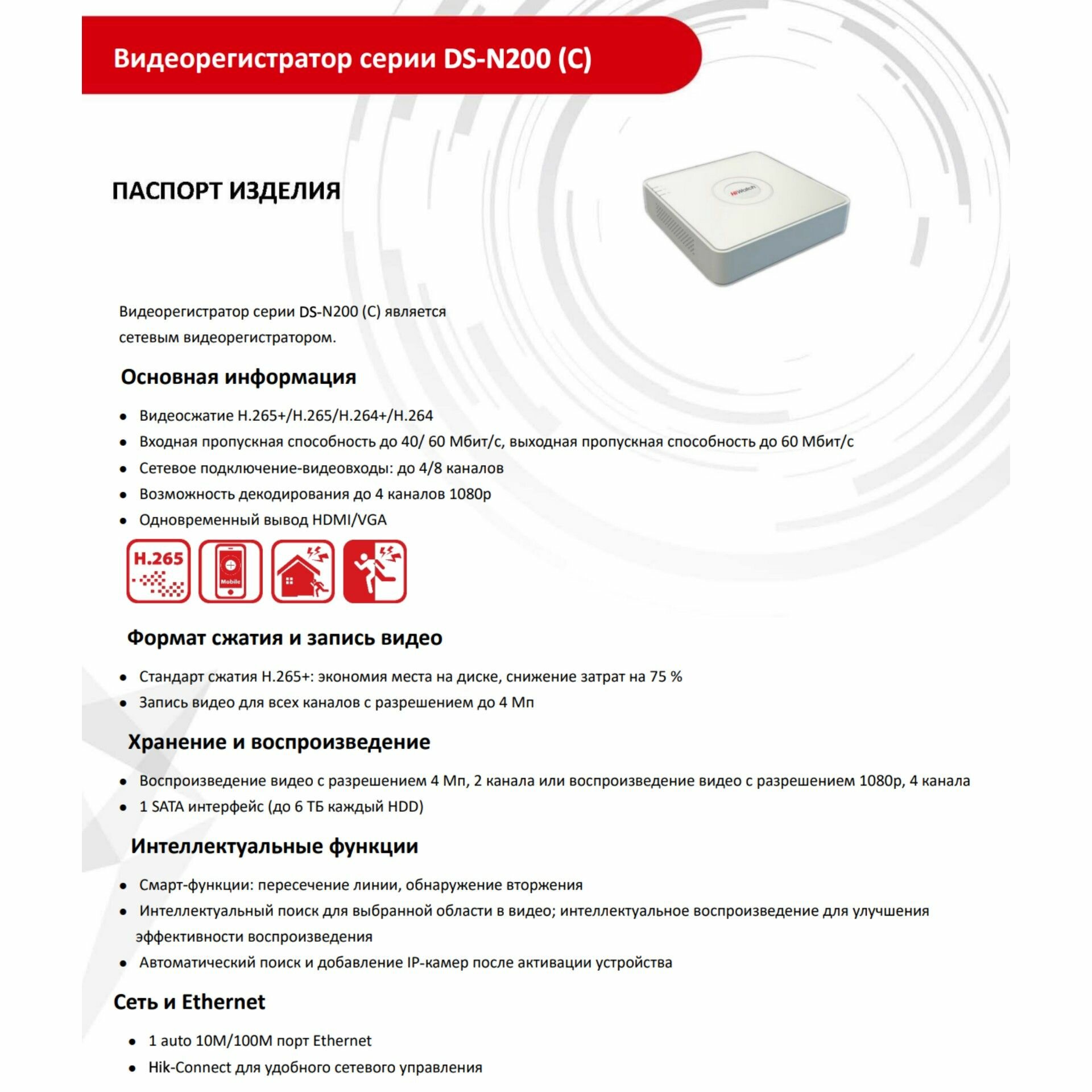 HiWatch DS-N204(C) - 4 канальный видеорегистратор IP для камер видеонаблюдения, NVR регистратор сетевой информация: