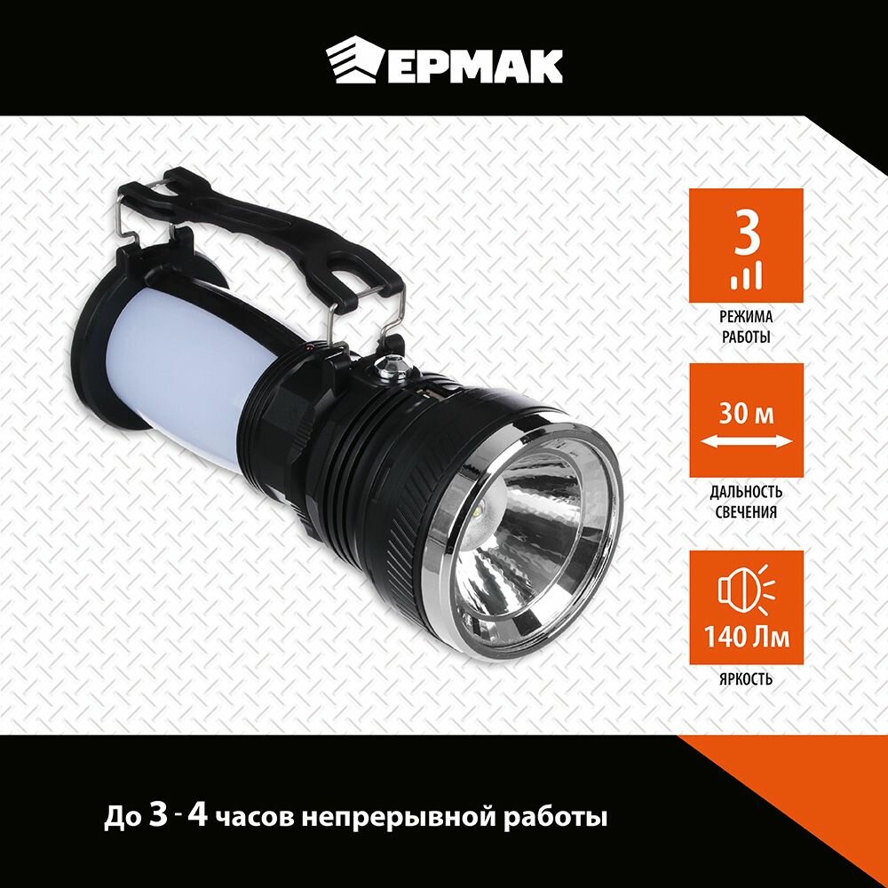 10 цен на Фонарь-прожектор ручной 2-в-1 ермак аккумуляторный 24 SMD + 1 Вт LED, шнур 220 В