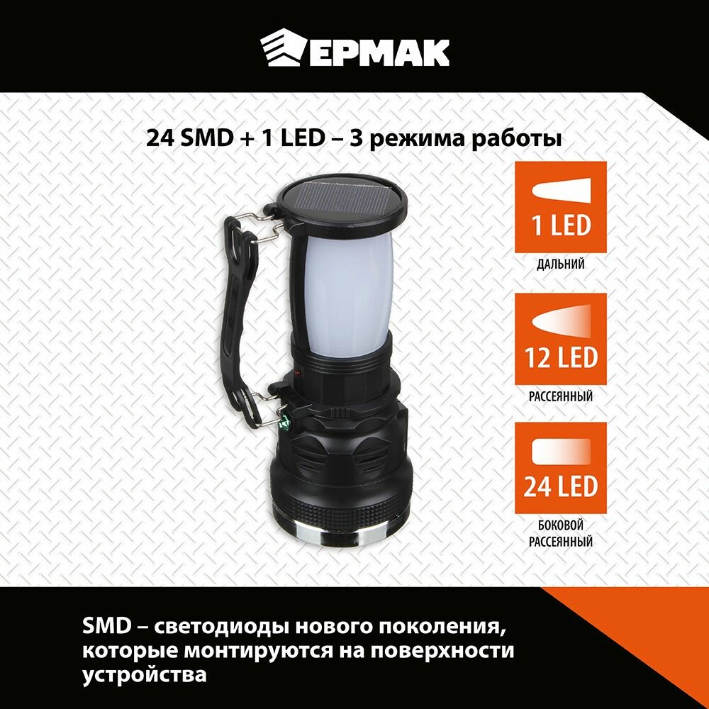 Фонарь прожектор ермак 198-091 24 SMD + 1 Вт LED, черный/белый