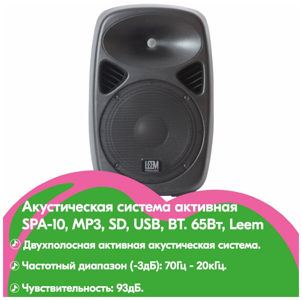 10 цен на Leem SPA-10 Акустическая система активная, MP3, SD, USB, BT. 65Вт
