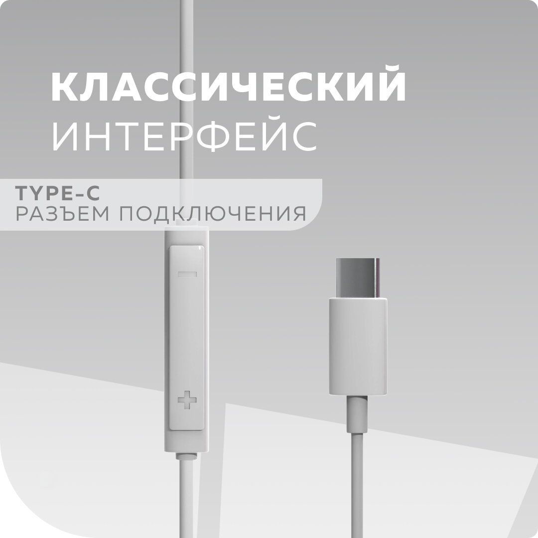 10 цен на Наушники вкладыши Type-C разъём с микрофоном и регулятором громкости длина 1.2м More choice G12 White