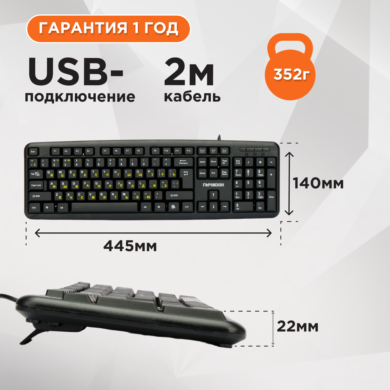 Проводная клавиатура Гарнизон черная 104 клавиши с кабелем 2 метра GK-100XL информация: