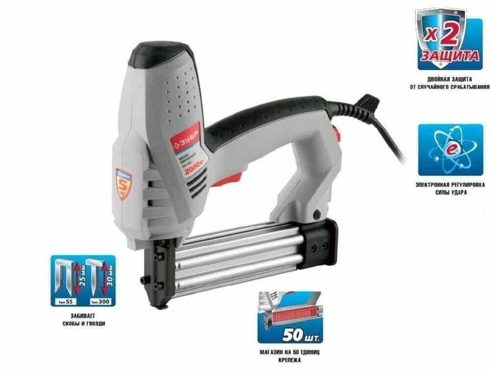 Пистолет скобозабивной электрический ЗСП-2000 мастер ЗУБР 2000 ВТ, 20 уд/мин. информация: