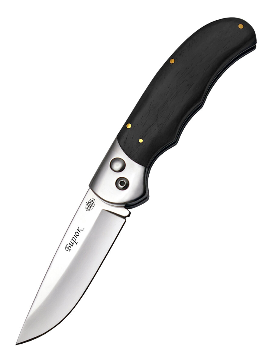 Автоматический складной нож Бирюк (кнопочный), сталь 65Х13, рукоять дерево