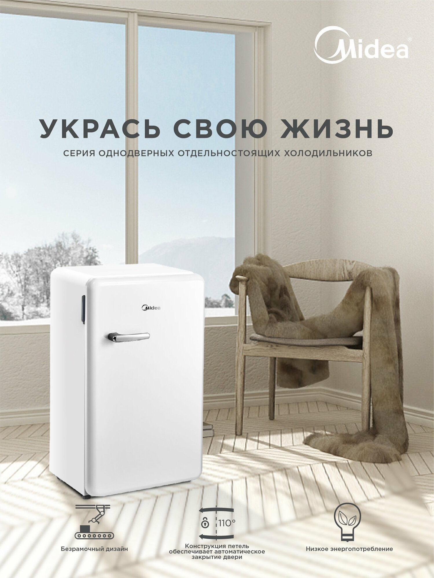 Холодильник Midea MDRD142SLF01, 93 л, энергосбережение, дверь легкого закрытия, ретро, белый информация: