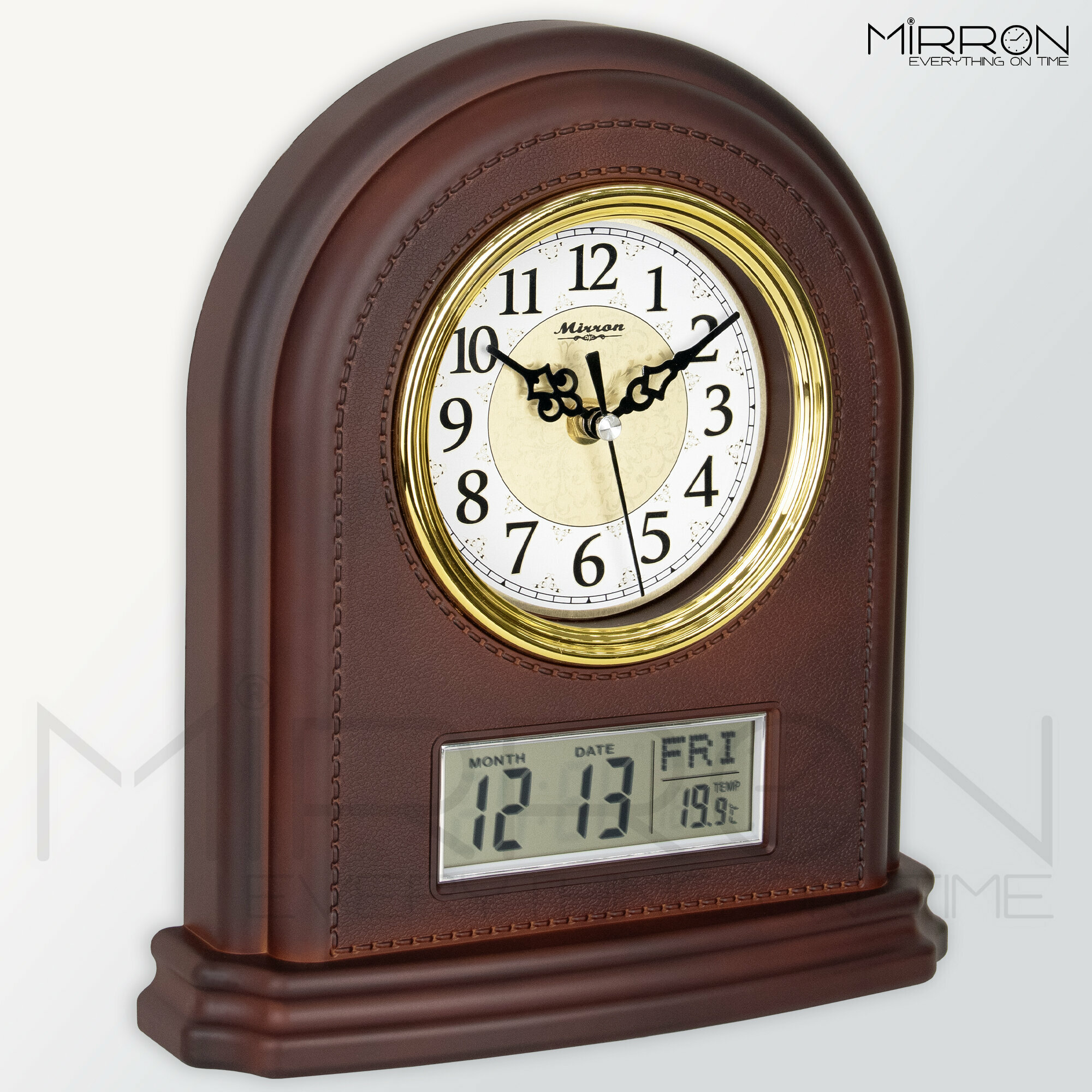 10 цен на Классические настольные часы с ЖК дисплеем SN06C ЖК ТДБ/Коричневый цвет корпуса/Золотой ободок циферблата/Светлый циферблат/Арабские цифры/Часы с датой/Каминные часы/Металлический циферблат
