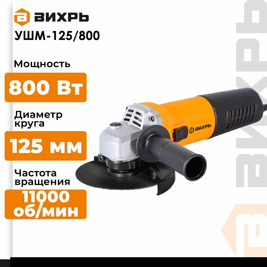 УШМ вихрь УШМ-125/800, 800 Вт, 125 мм, без аккумулятора информация:
