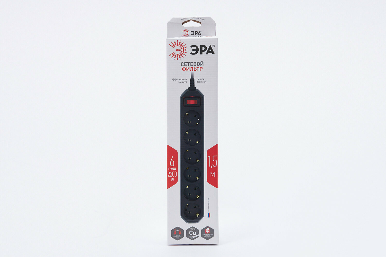 Сетевой фильтр Эра Черный, 1,5 м, 6 розеток информация: