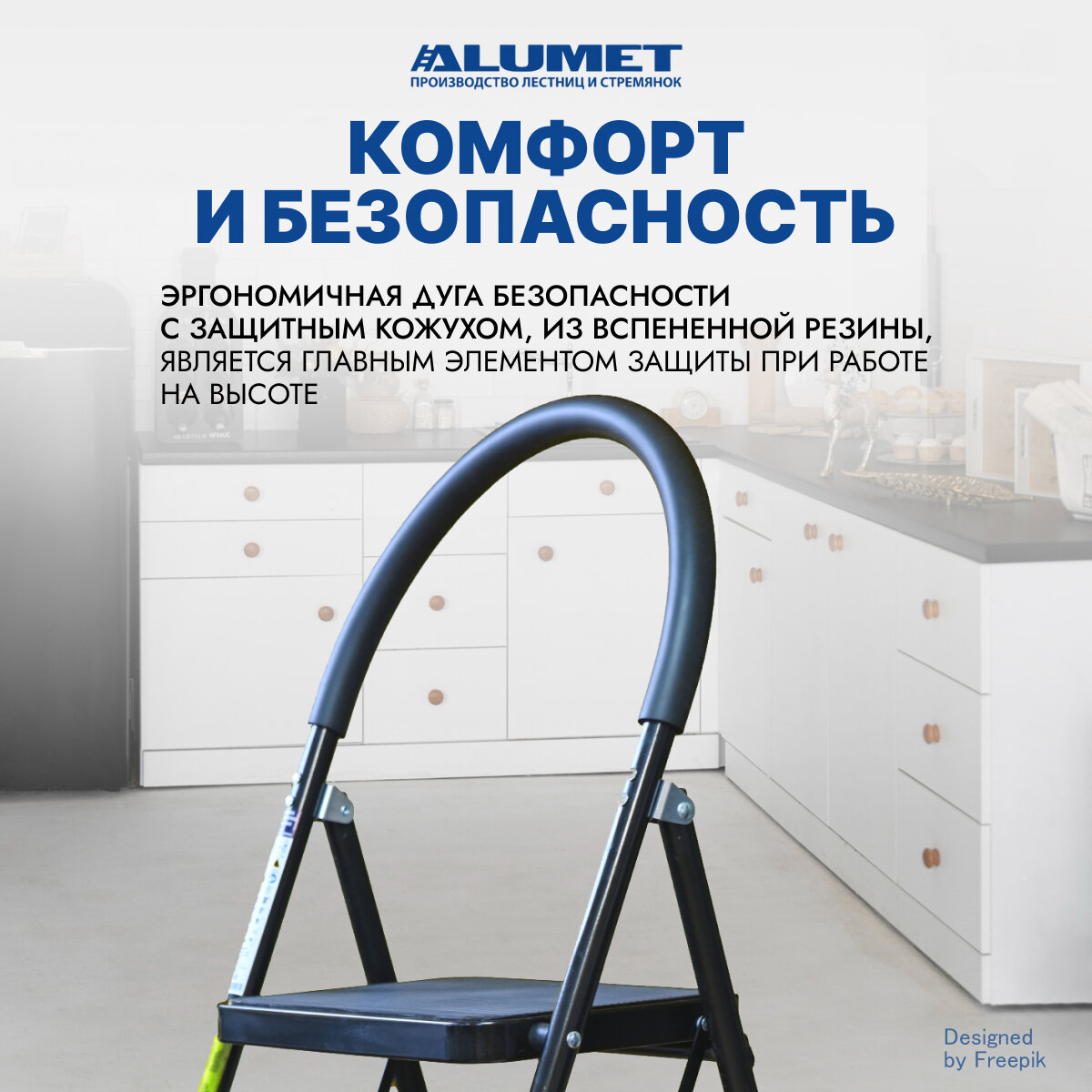 Стремянка-стул с широкими ступенями стальная ALUMET MCH 204