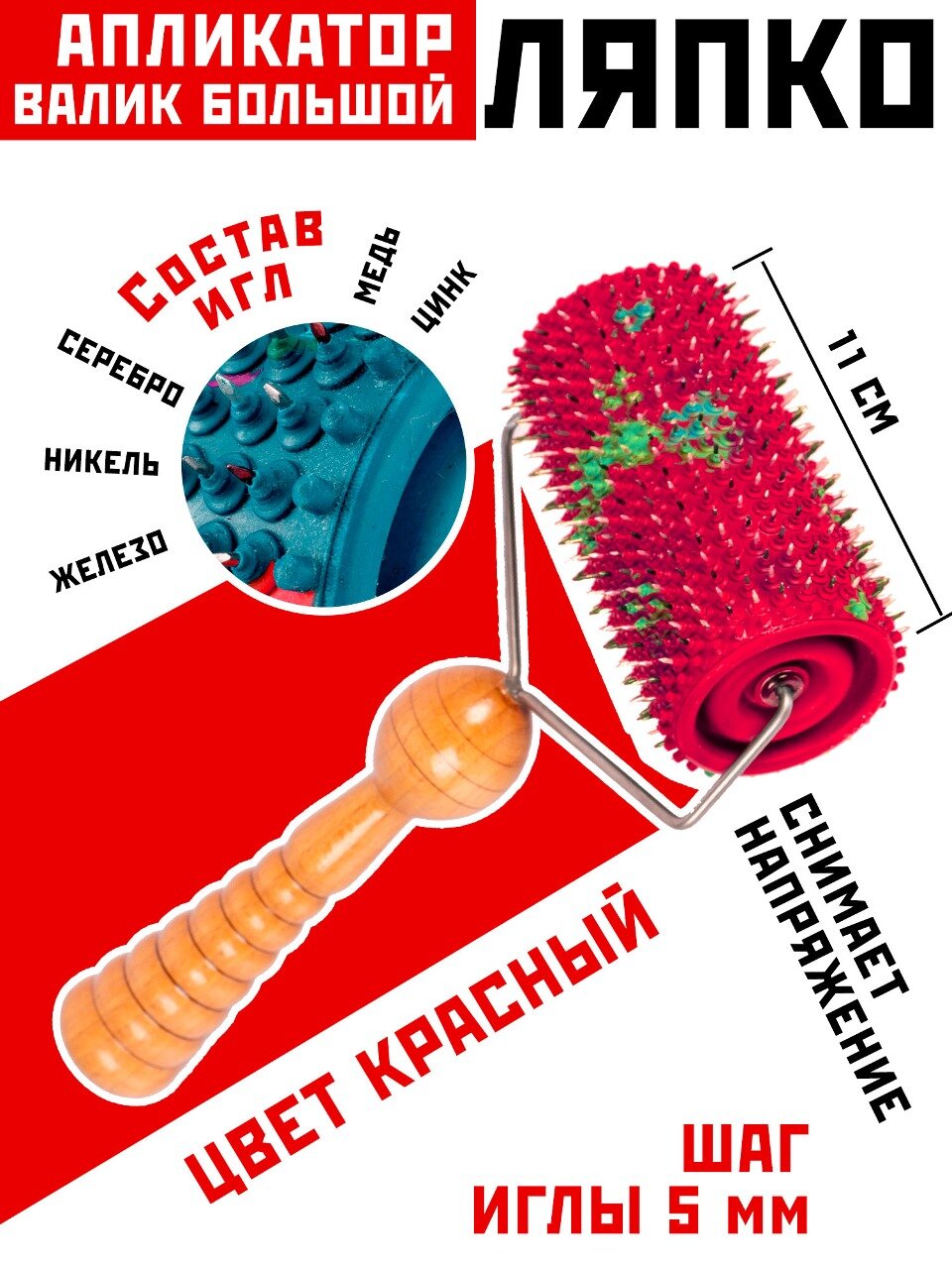 Отзывы на Массажный валик аппликатор Ляпко "Большой", (шаг 5 мм; ширина 11 см; диаметр 6,1 см; 570 игл), красный