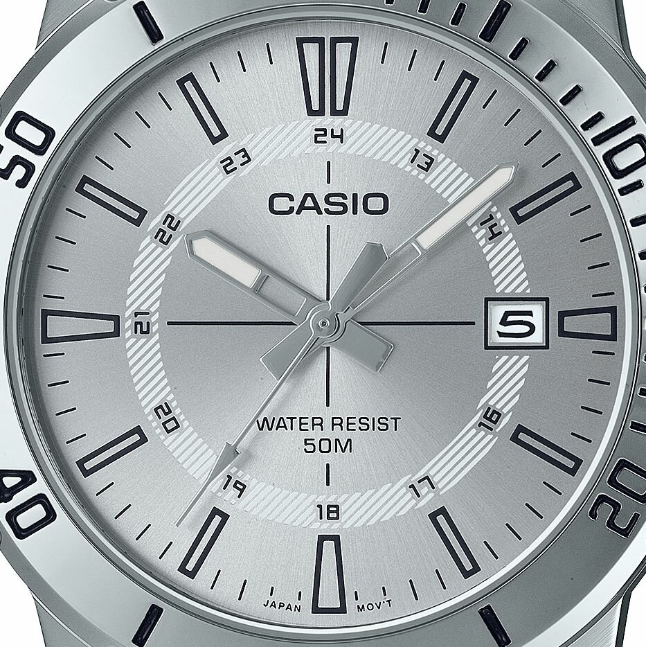 MTP-VD01D-7C Casio наручные часы кварцевые WR50 (5 атм) мужские серебряный, серый отображение числа подсветка стрелок минеральное стекло информация:
