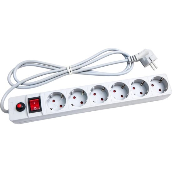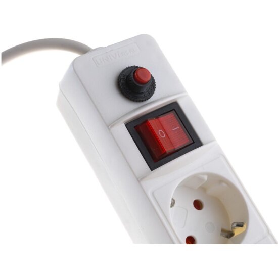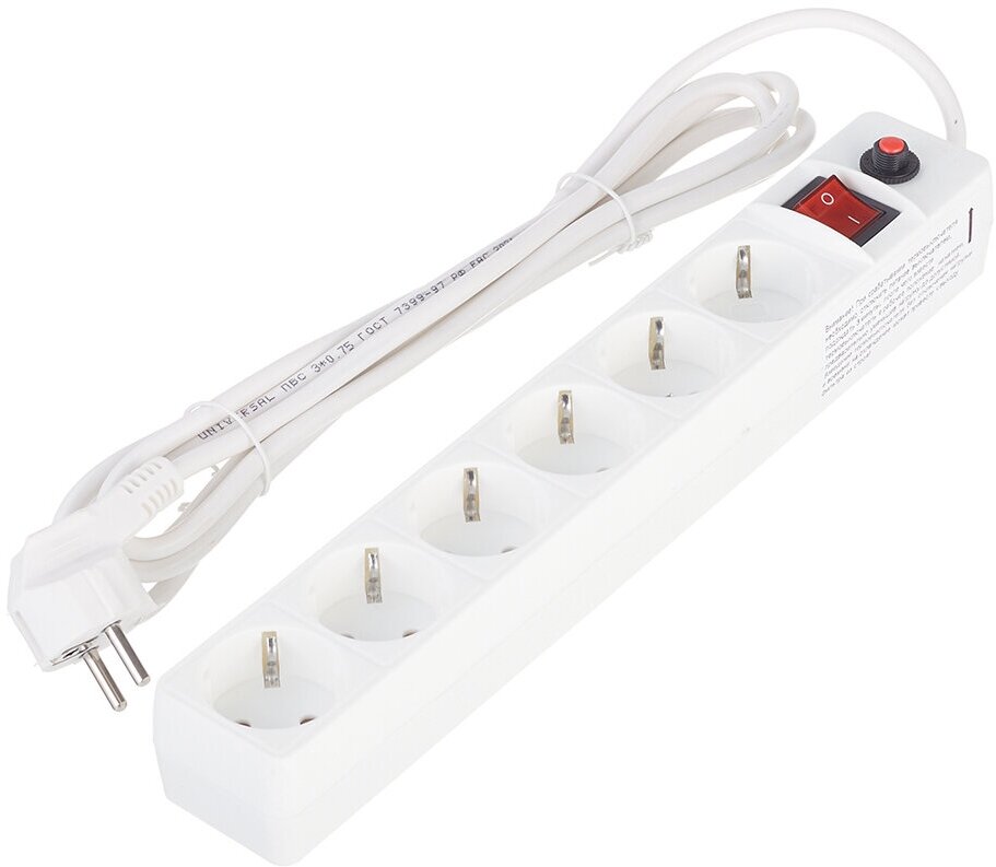 Удлинитель, сетевой фильтр (пилот) 6 мест, 1.8 м, UNIVersal, ПВС 3х0.75, белый, с предохранителем