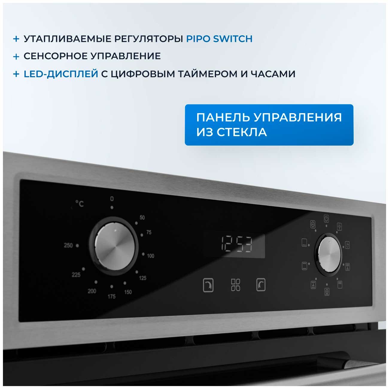Духовой шкаф электрический встраиваемый ZUGEL ZOE452X, 2800 Вт, 50 л, утапливаемые регуляторы, дисплей, 9 режимов работы, гриль, конвекция, эмаль, серый 34 490 ₽