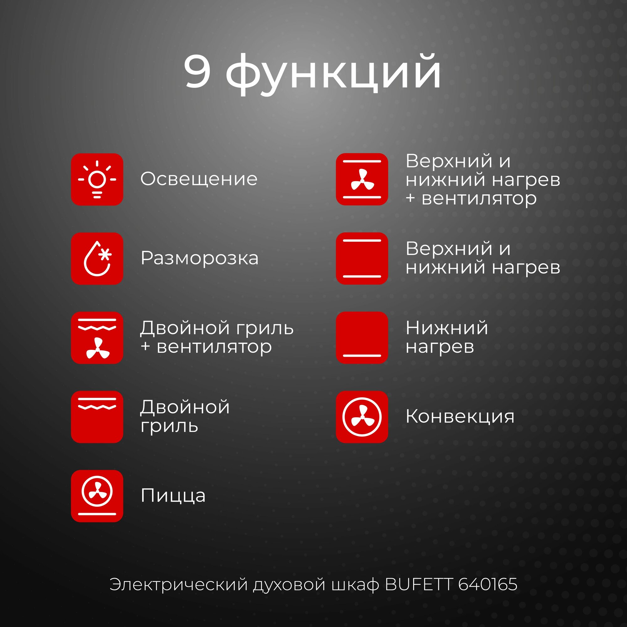 Встраиваемый духовой шкаф BUFETT 2800 Ватт 45 см, 640165 информация: