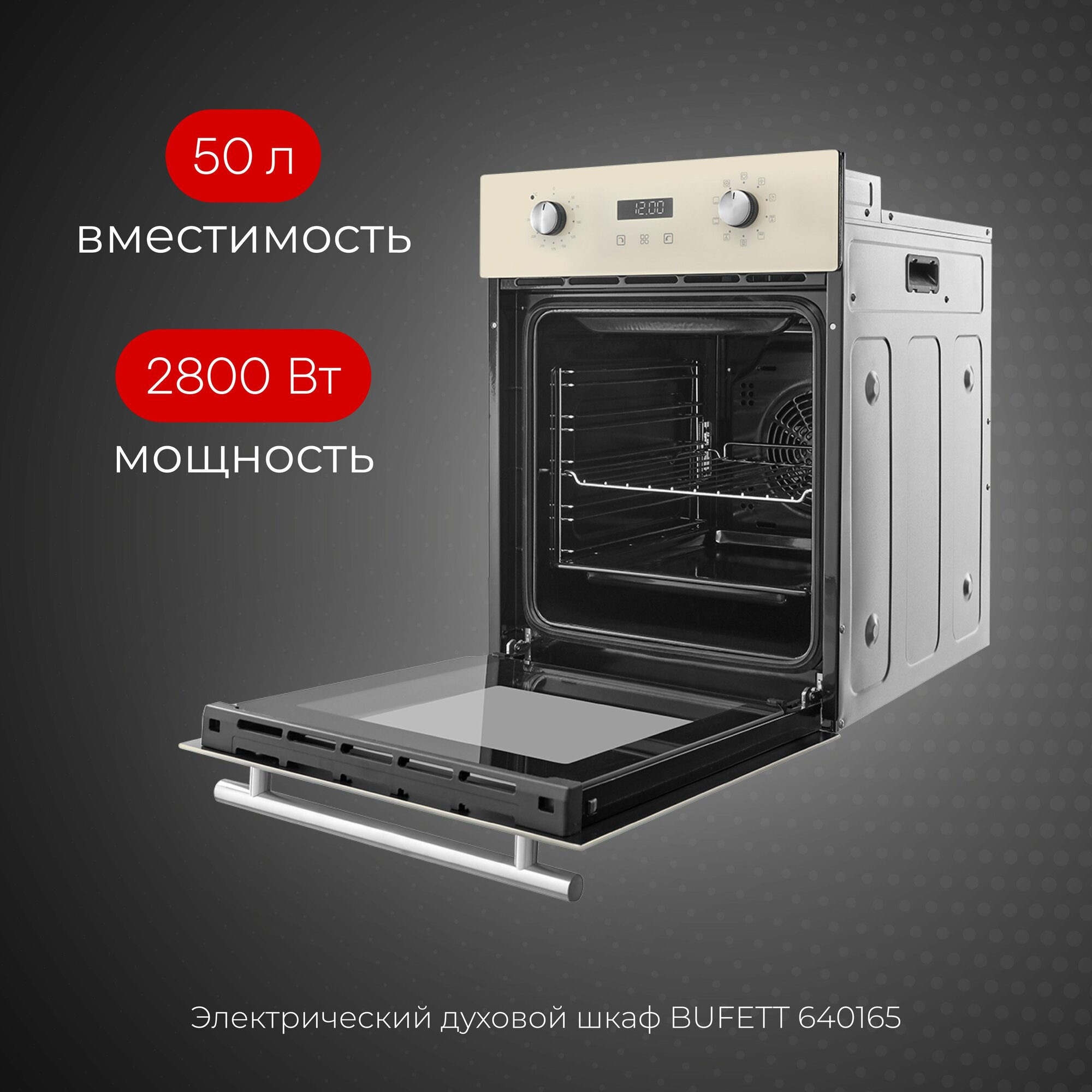 Шкаф духовой электрический Bufett YON 164 встраиваемый, 60см, 56л, 9 функций 2800 Вт цвет слоновая кость, 640164