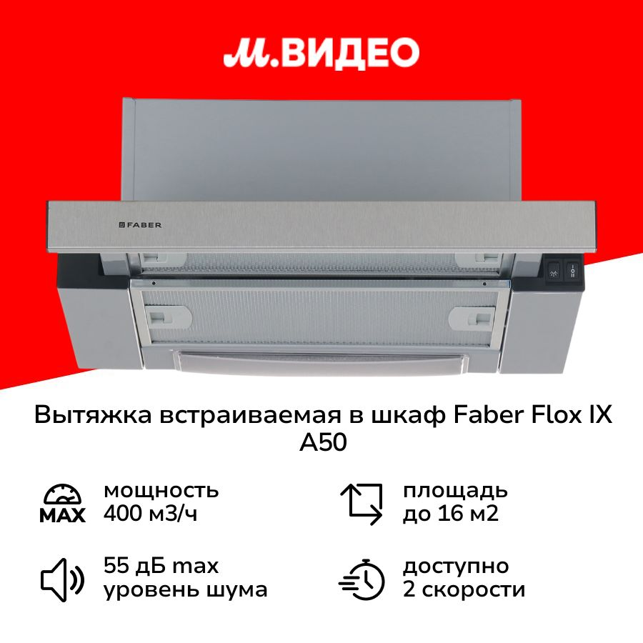 Вытяжка встраиваемая в шкаф Faber FLOX IX A50 информация: