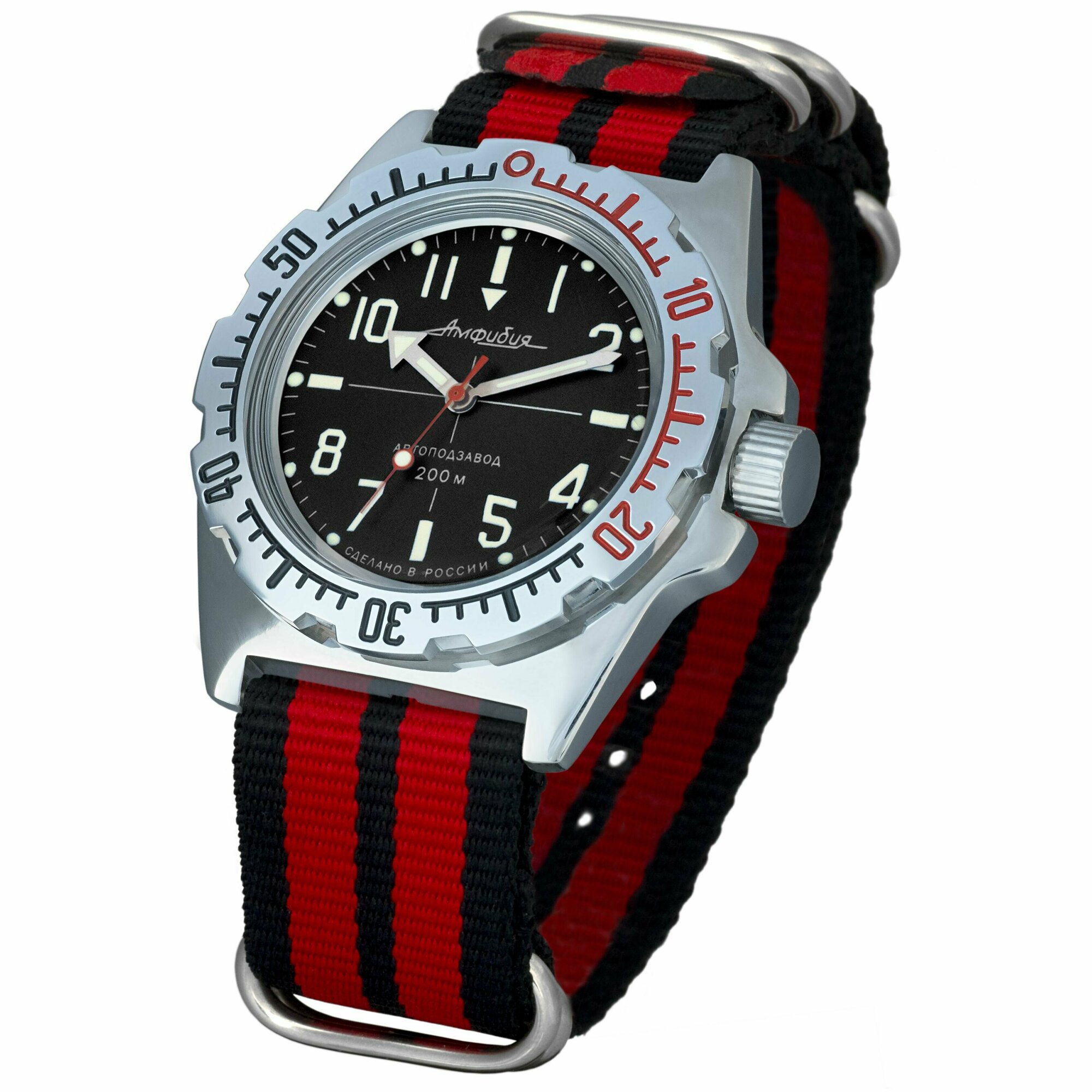 Часы наручные мужские механические с автоподзаводом Восток Амфибия 110647_black_red, нейлон, красный/черный 7 806 ₽