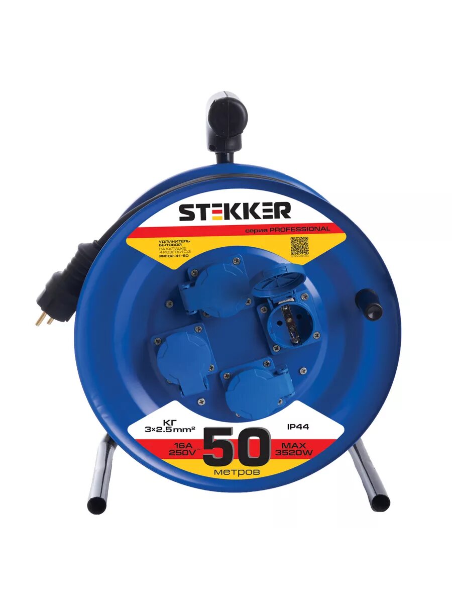 4-местный удлинитель на катушке STEKKER с заземлением, 50м, серия Professional, PRF02-41-50, синий 39297 информация:
