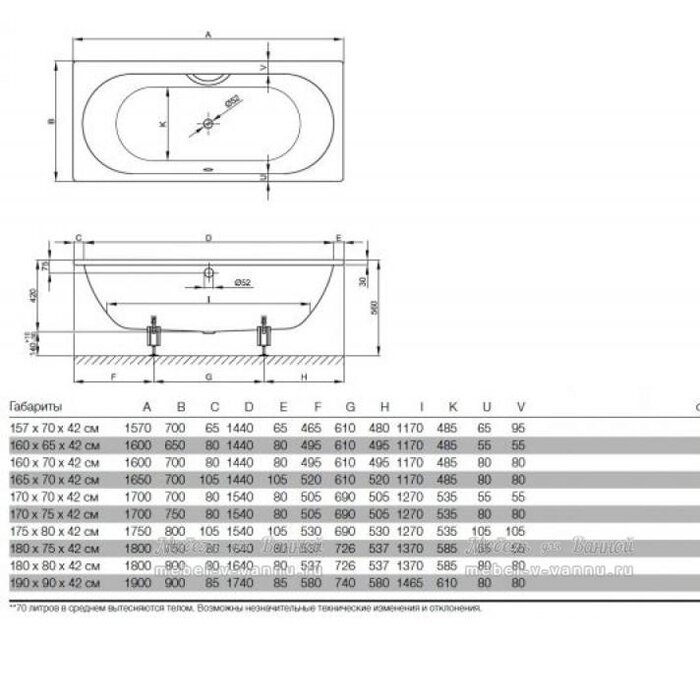 Ванна Gamma 140х70 см, акриловая, на каркасе, экран к ванне Gamma 140