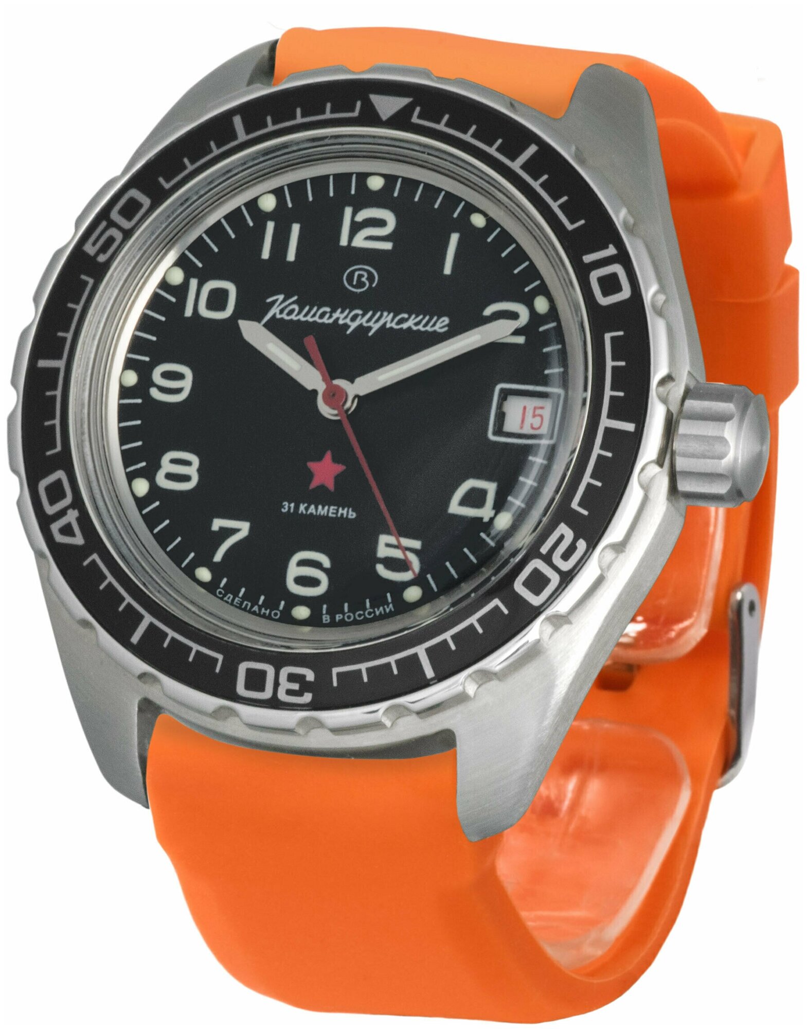 Наручные механические часы с автоподзаводом Восток Командирские 020706 black orange