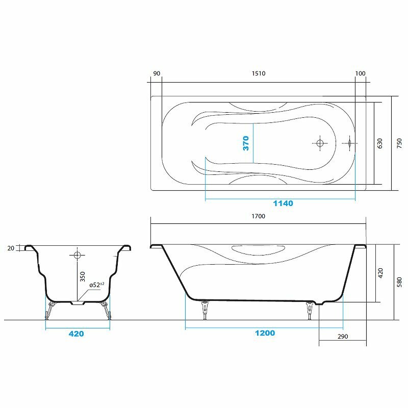 AQ8070F-00 гамма ванна чугунная эмалированная 1700x750 в комплекте с 4-мя ножками
