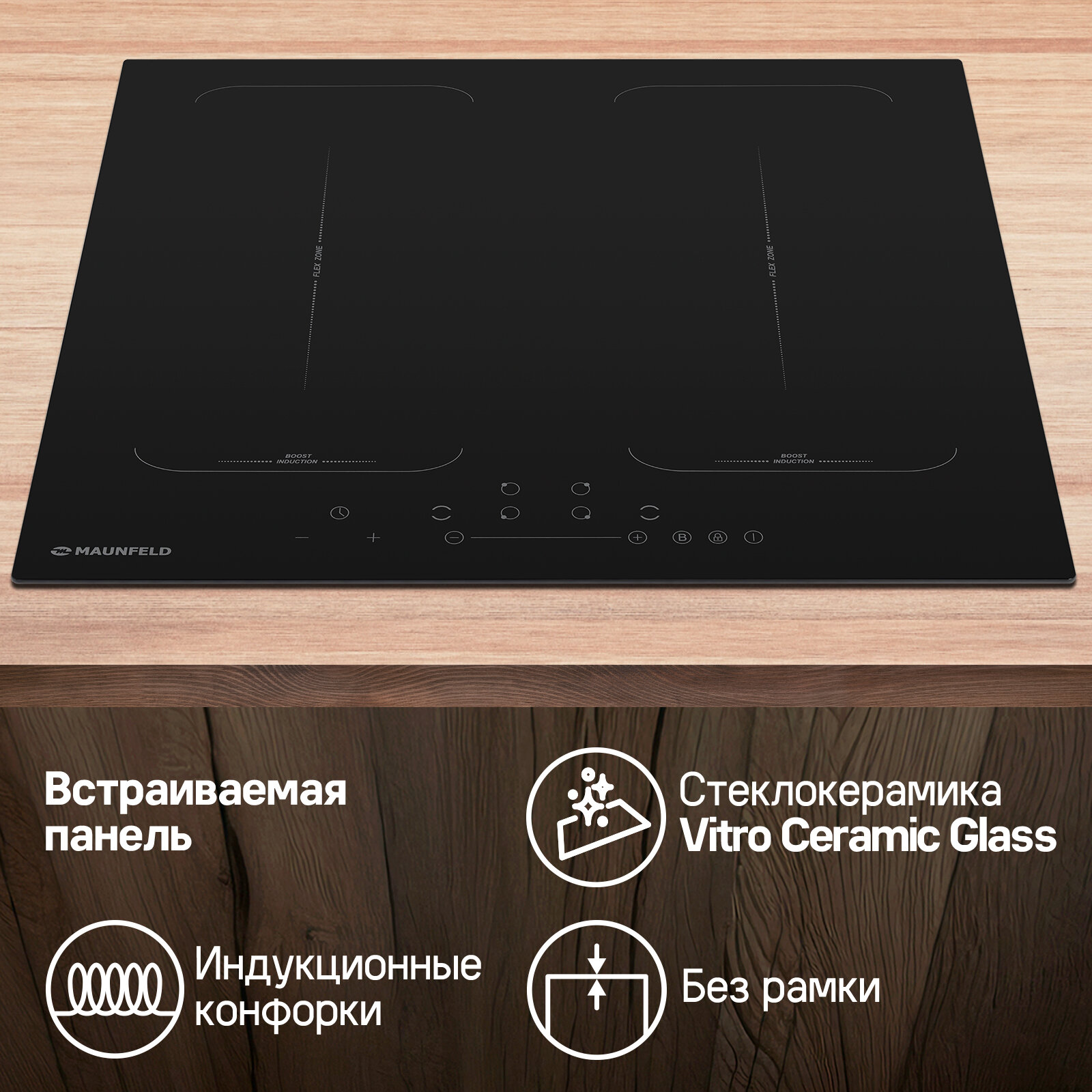 Индукционная варочная панель с двумя Flex Zone и Booster MAUNFELD EVI.594-FL2-BK информация: