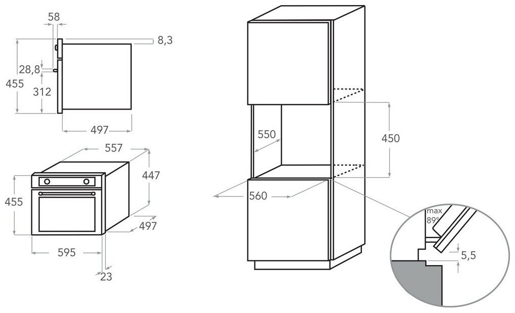 Духовой шкаф встраиваемый LEX EDM 077 C IV, 60 см, с конвекцией, механические ручки, объем 60 л, аналоговый таймер, телескопические направляющие.