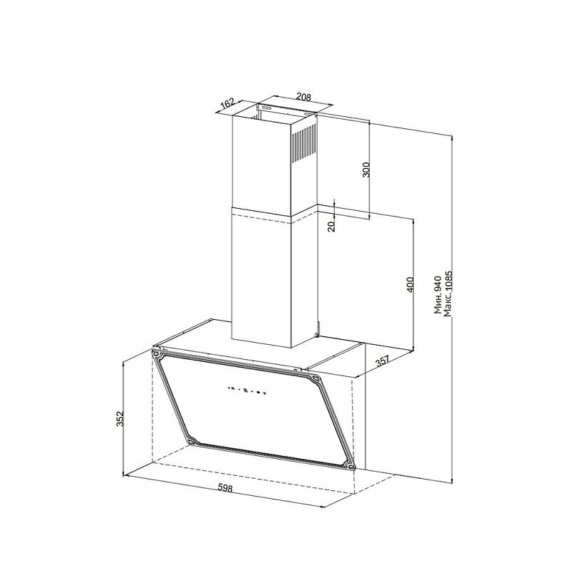 Наклонная кухонная вытяжка LEX MERA 600 WHITE, 60см, отделка: стекло, кнопочное управление, LED лампы, белый.