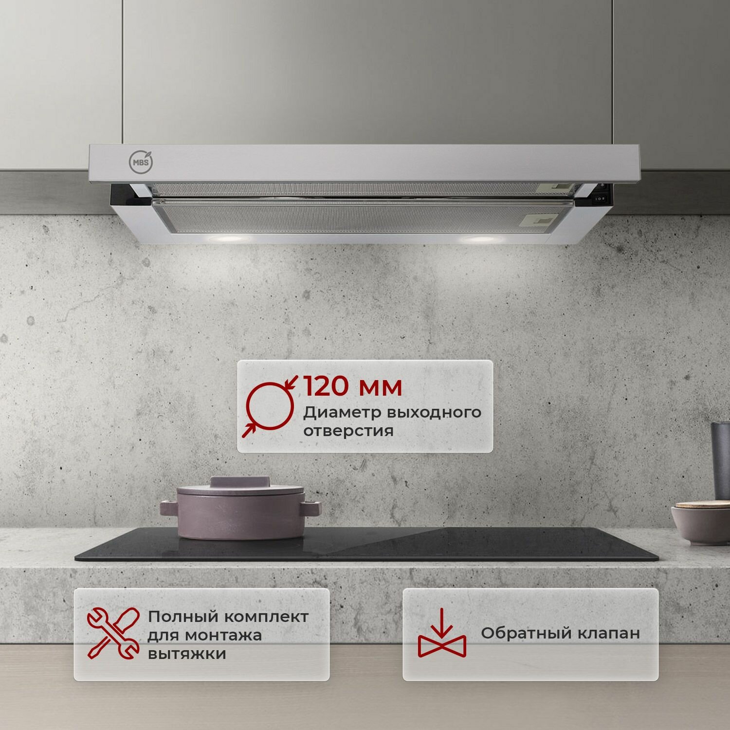 Отзывы на Кухонная вытяжка встраиваемая MBS ARALIA 150 WHITE/50 см/производительность 750м3/ч, низкий уровень шума.