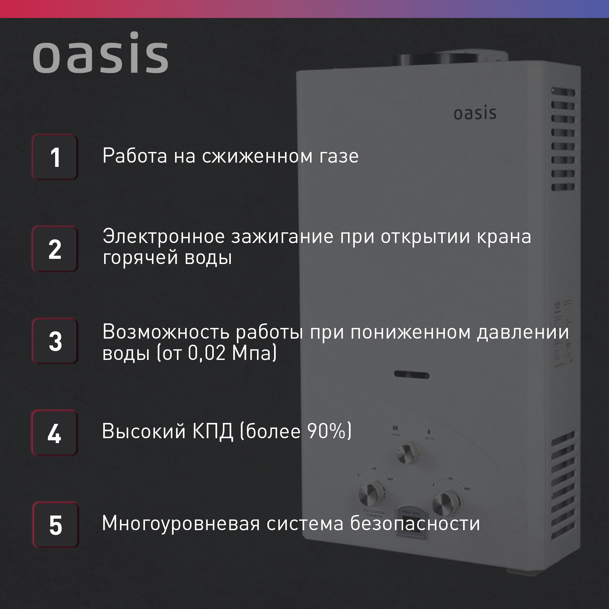 Колонка газовая Oasis 20 OG 10 л/мин сжиженный газ белая информация: