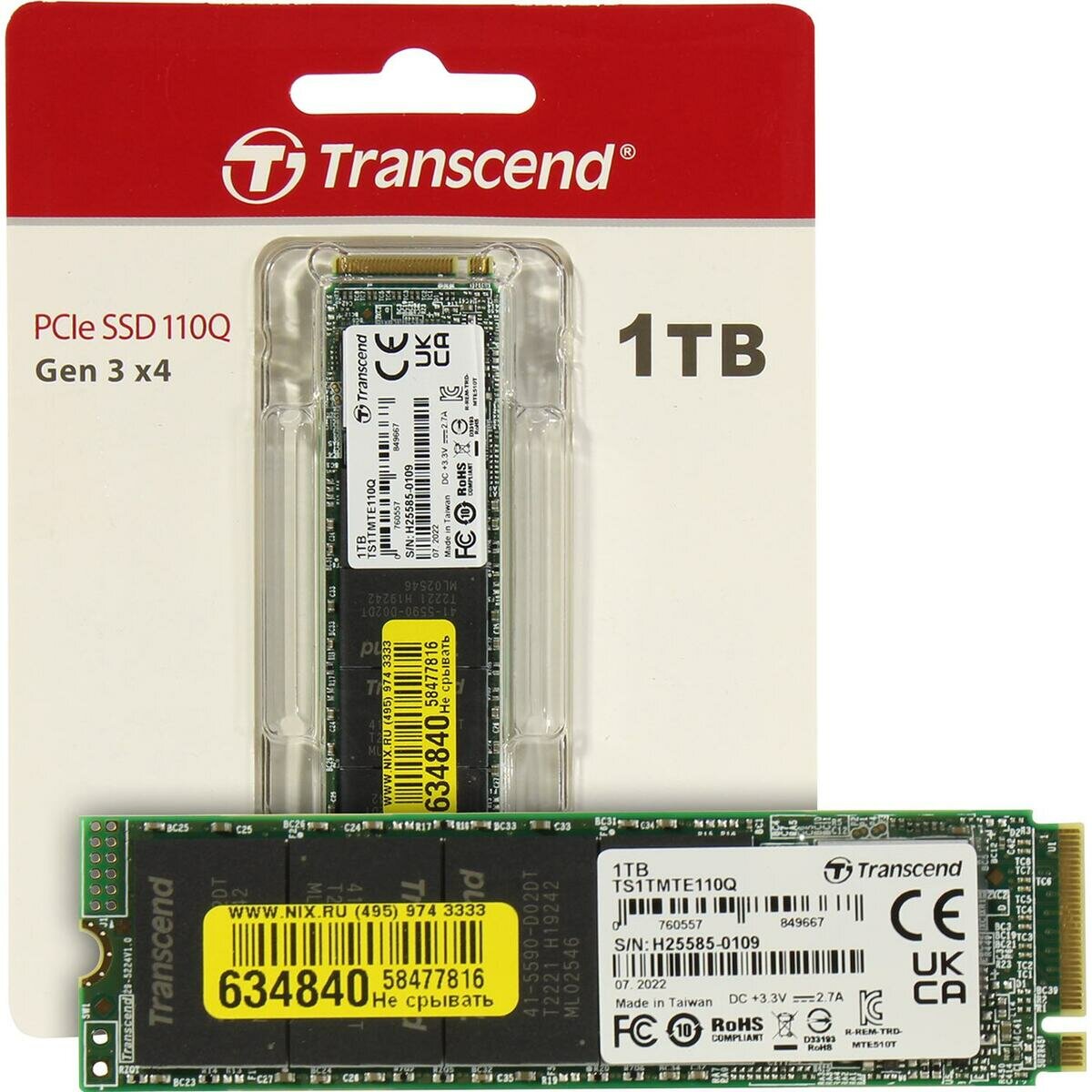 Твердотельный накопитель Transcend MTE110, M.2 (80 мм) NVMe 1.3 PCIe Gen3 x4, 3D NAND QLC, 1 Тб информация: