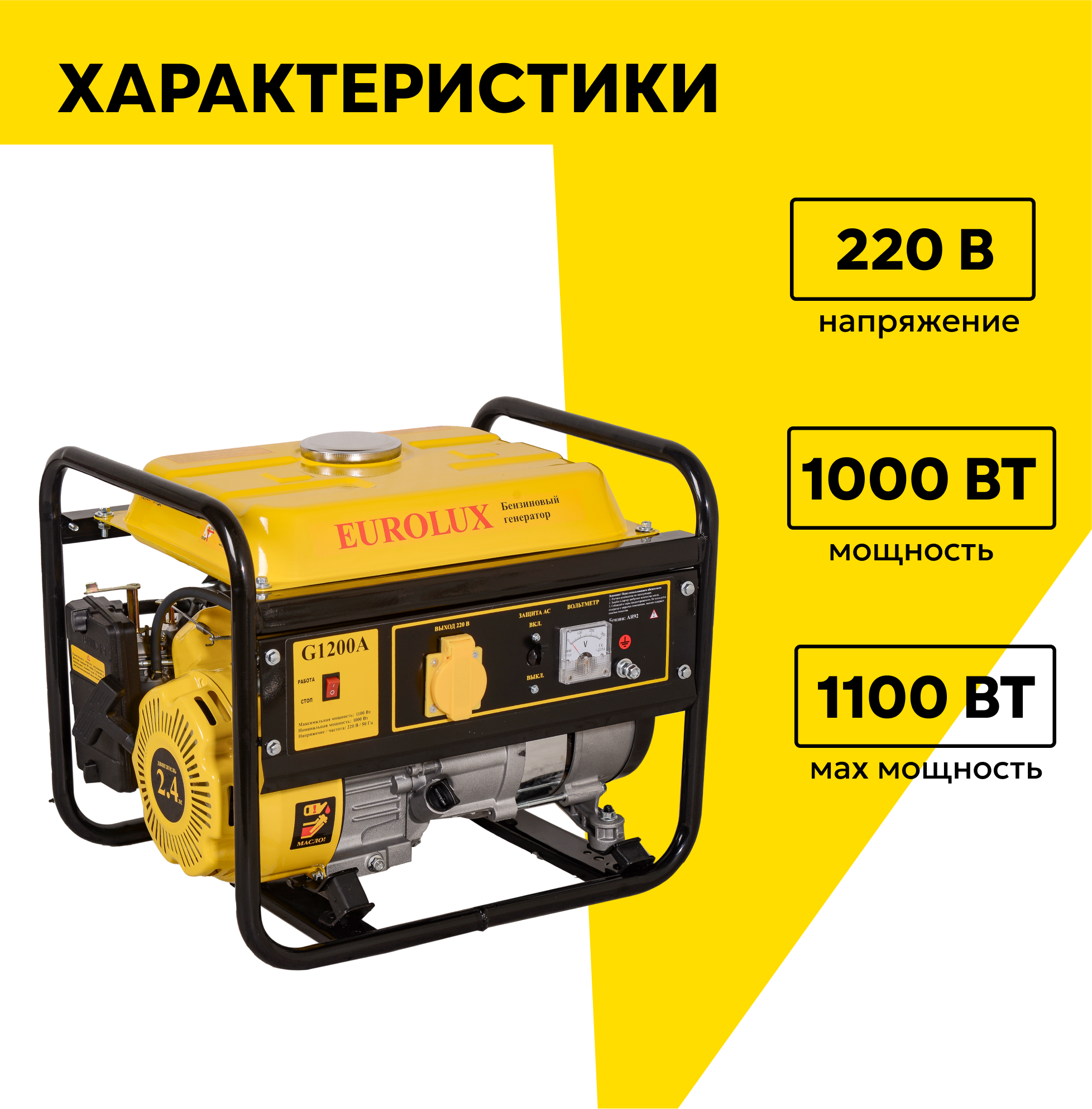 Бензиновый генератор EUROLUX G1200A, 1.1 кВт, ручной стартер информация: