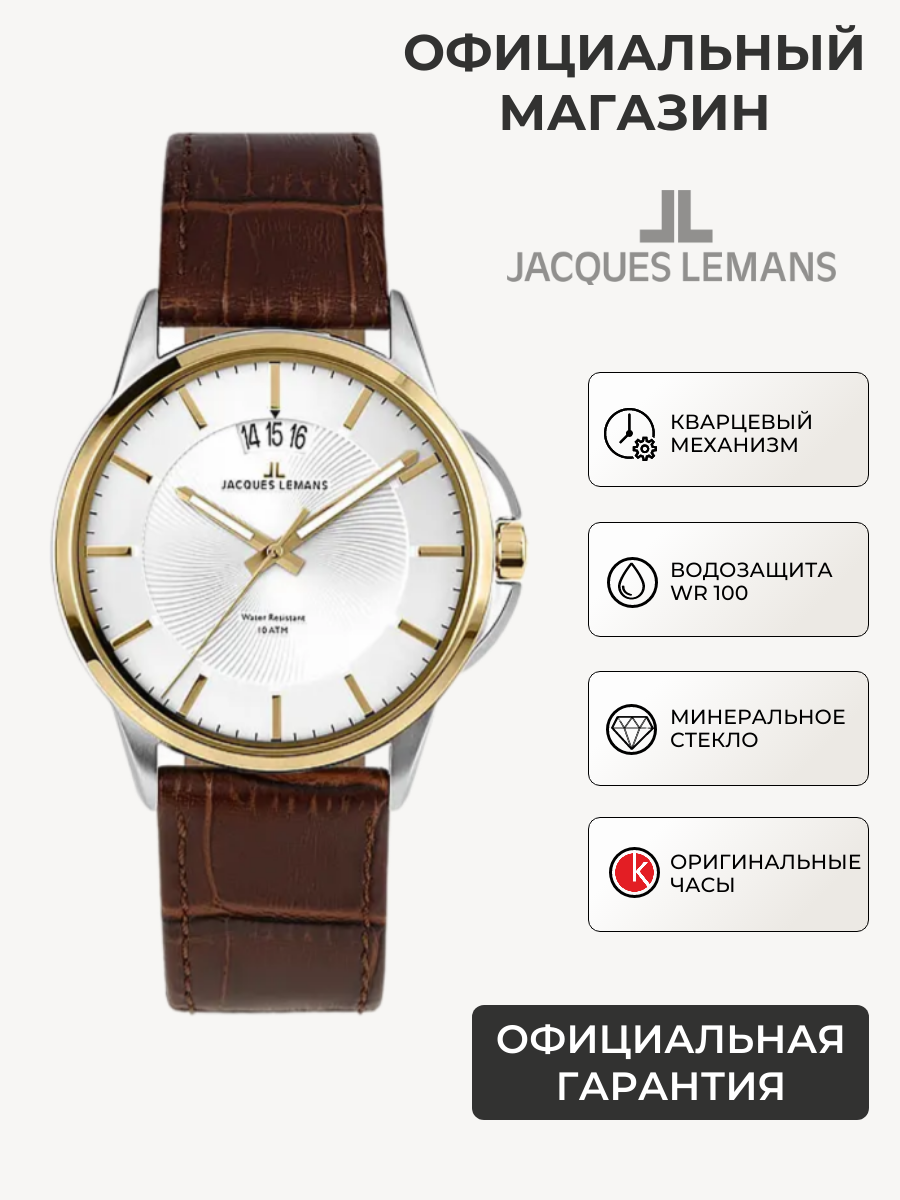 10 цен на Австрийские кварцевые часы Jacques Lemans Sydney 1-1540H на кожанном браслете, с водозащитой 10 бар и международной гарантией от производителя (1-1540H)