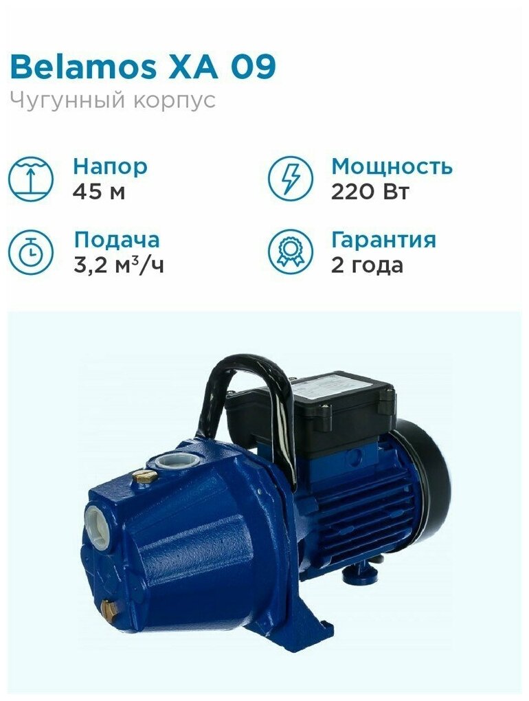 Насос поверхностный центробежный Belamos XA 09, 800 Вт, 60 л/мин, Н-40 м, чугун информация: